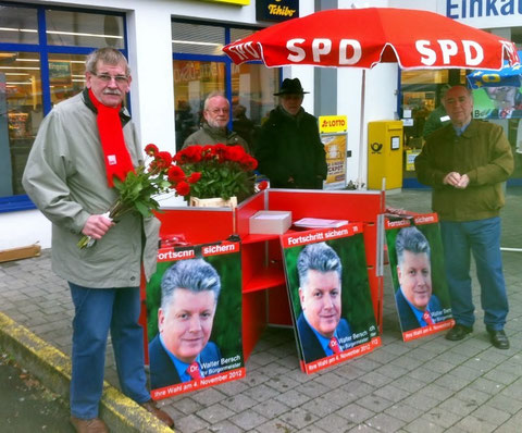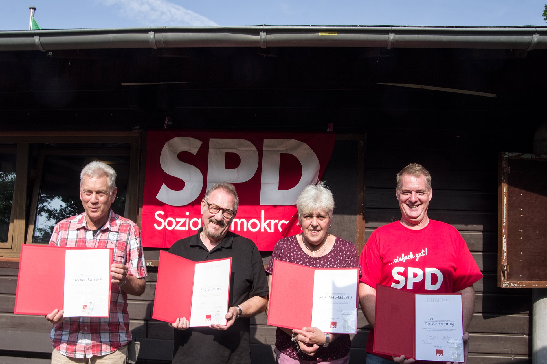 v.l.n.r.: Michael Maurer, SPD Keisvorsitzender, Norbert Bock, SPD Ortsvereinsvorsitzender, Peter Gras, scheidender Vorsitzender und Andreas Nick, stellv. Ortsvereinsvorsitzender.